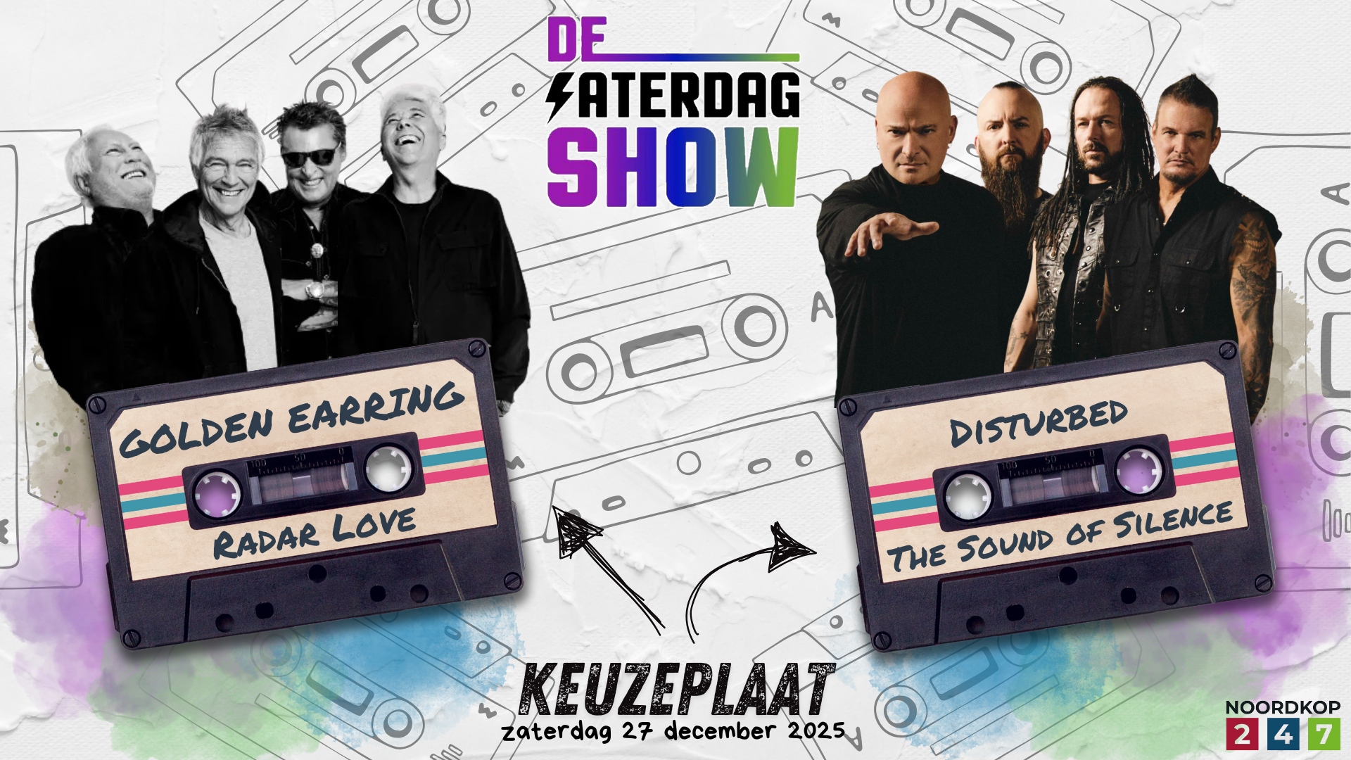 27 december – Keuzeplaathttps://zaterdagshow.nl/wp-content/uploads/2025/12/KP-kort-2712.mp3 Golden Earring – Radar Love1 Disturbed – The Sound of Silence1 In: #Home, Keuze Plaat